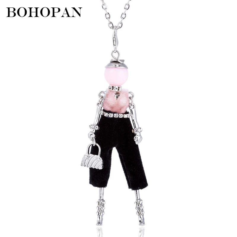 Best Bohopan 2019 Women Fashion Jewelry Necklace Shine Rhinestone Doll Pendants Neck Chain High Quality