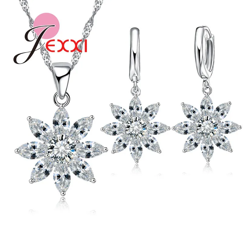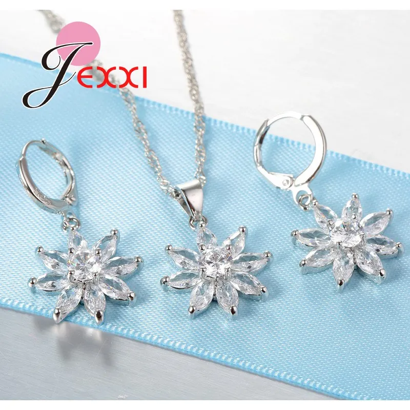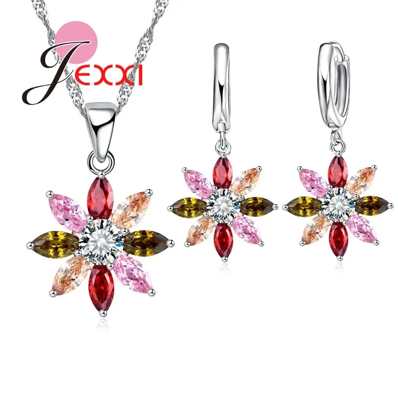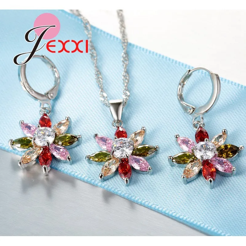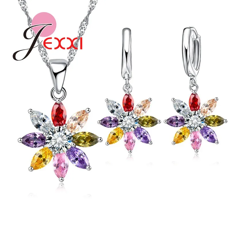 Best Hot Sale 925 Sterling Silver Bridal Jewelry Set Colorful Cubic Zircon Pendant Necklace Earrings Wed