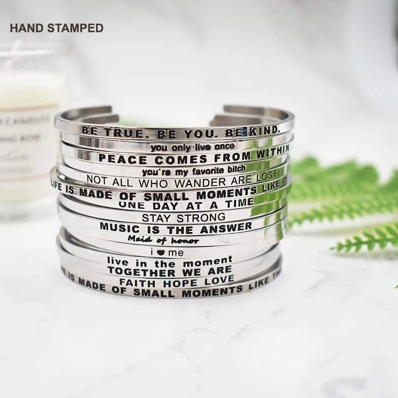 Best Love Bracelet Encouragement Quotes Bangles 316L Stainless Steel Female Inspirational Jewelry Silver