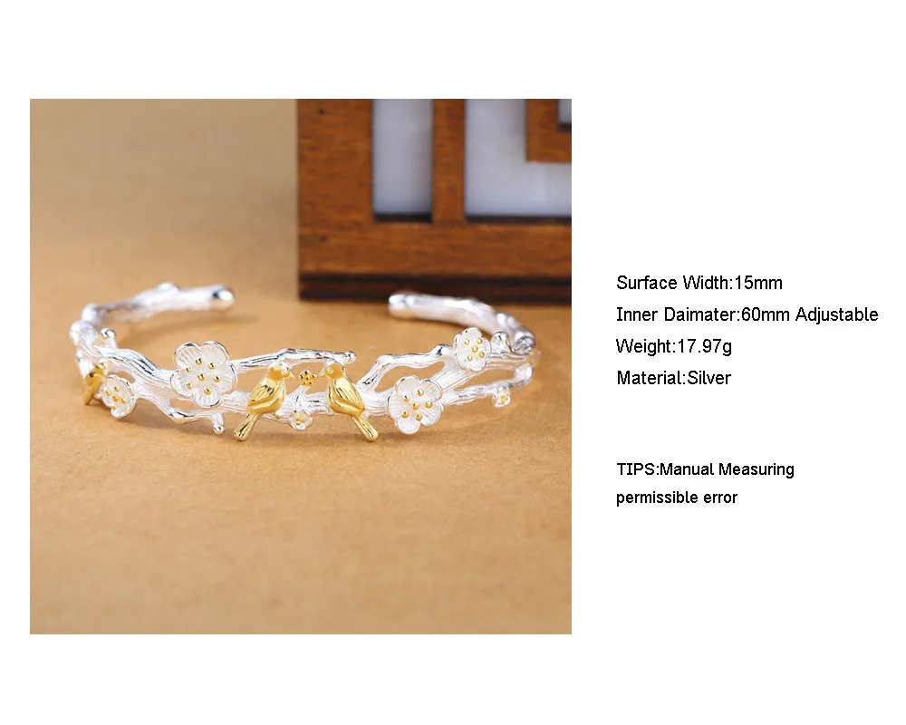 Buy ANENJERY Fashion Little Bird and Plum Blossom Adjustable Bangle Bracelet 925 Sterling Silver Bangle