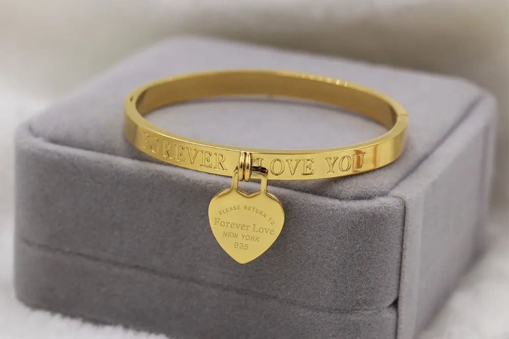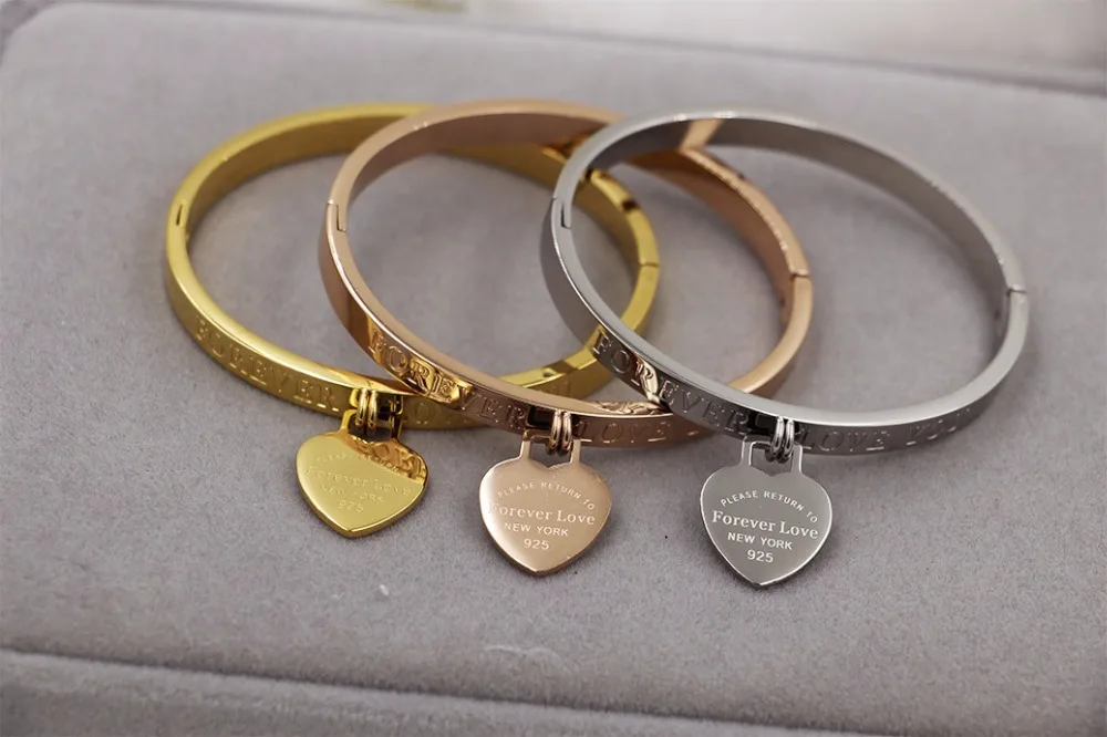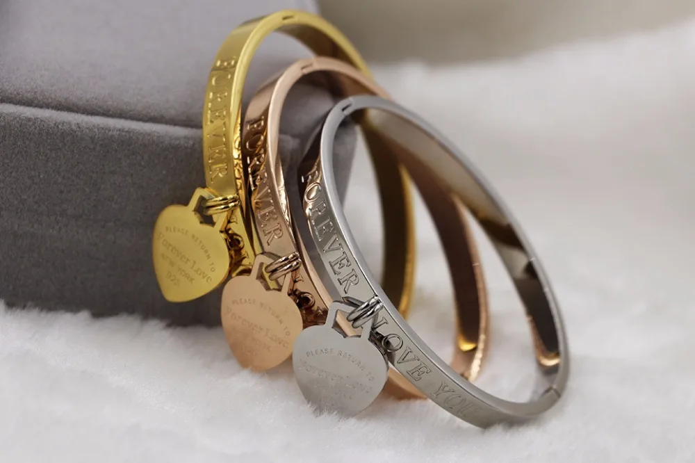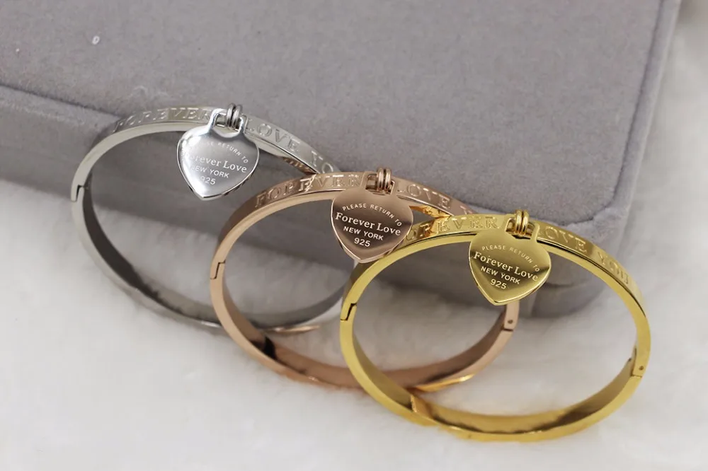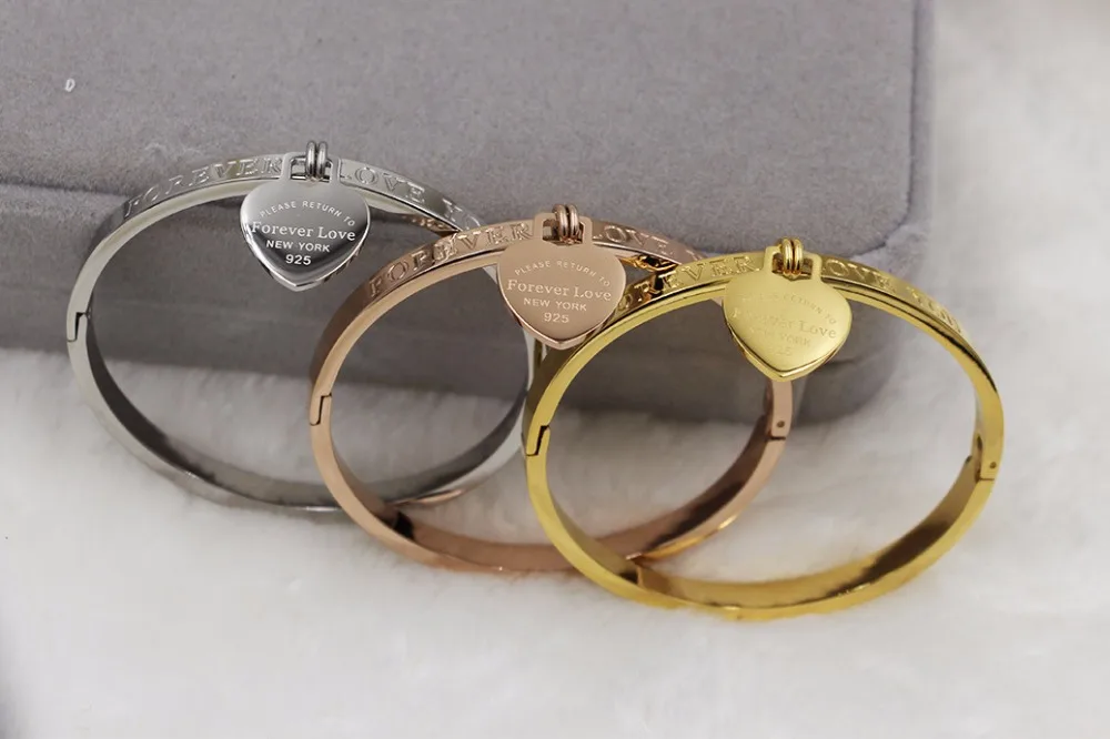 Promo Fashion Brand Rose Gold Color Stainless Steel Forever Better Heart Bracelet Wristband Charm Bangle