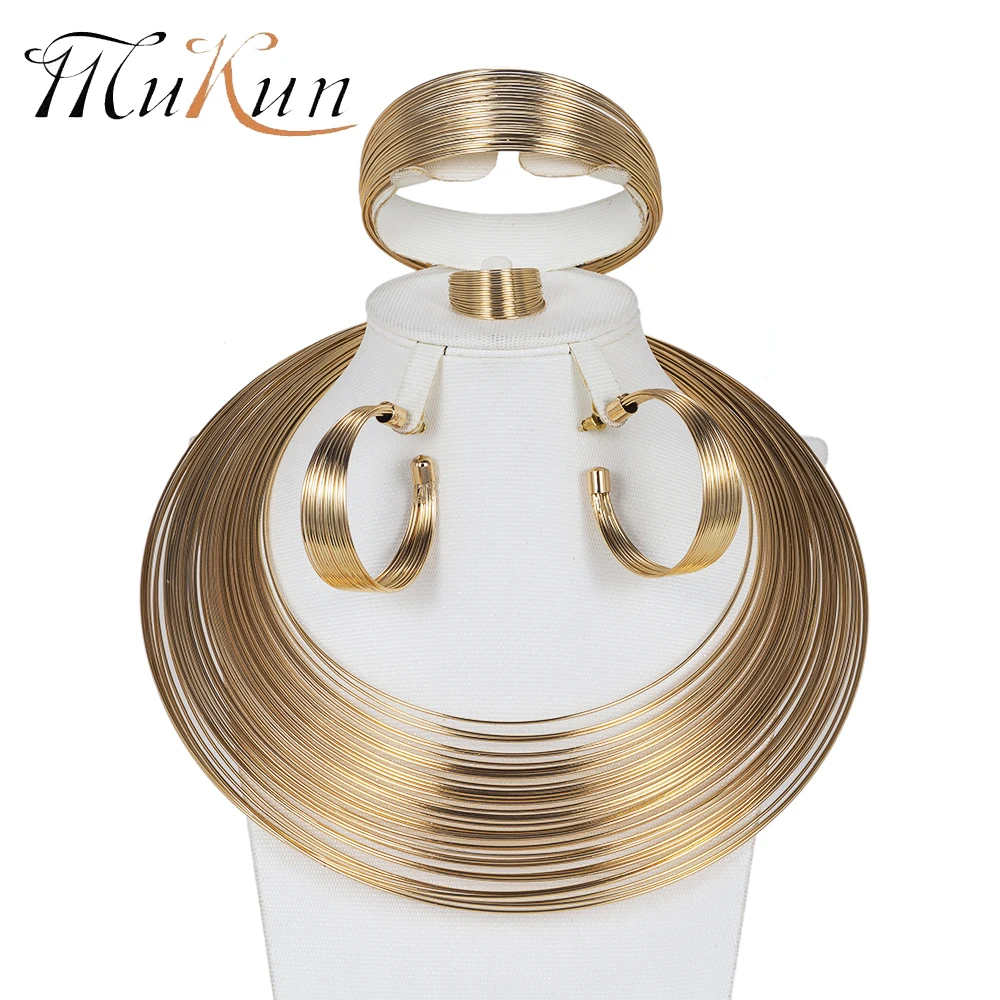 Promo MUKUN Indian Jewelry Set Exquisite Chokers Necklaces Bangle Earrings Sets For Women dubai jewelry s