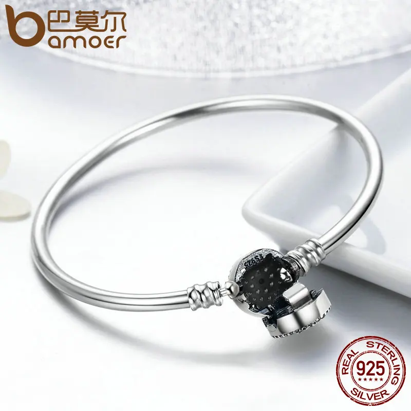Promo BAMOER High Quality Authentic 925 Sterling Silver Blue Eyes Clear CZ Snake Chain Heart Bangle & Bra