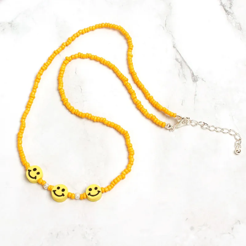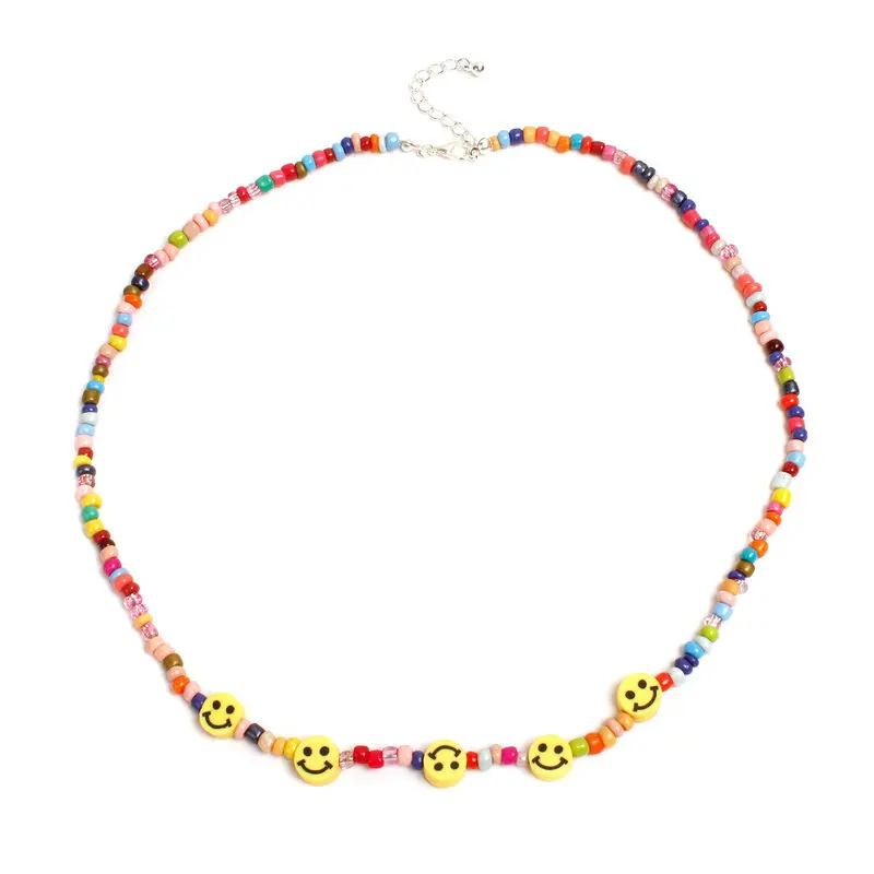New Boho rainbow color beads smiley face choker necklaces for women colorful bead chain statement neckl
