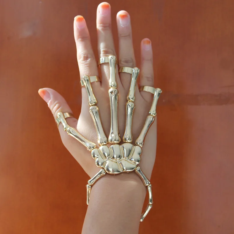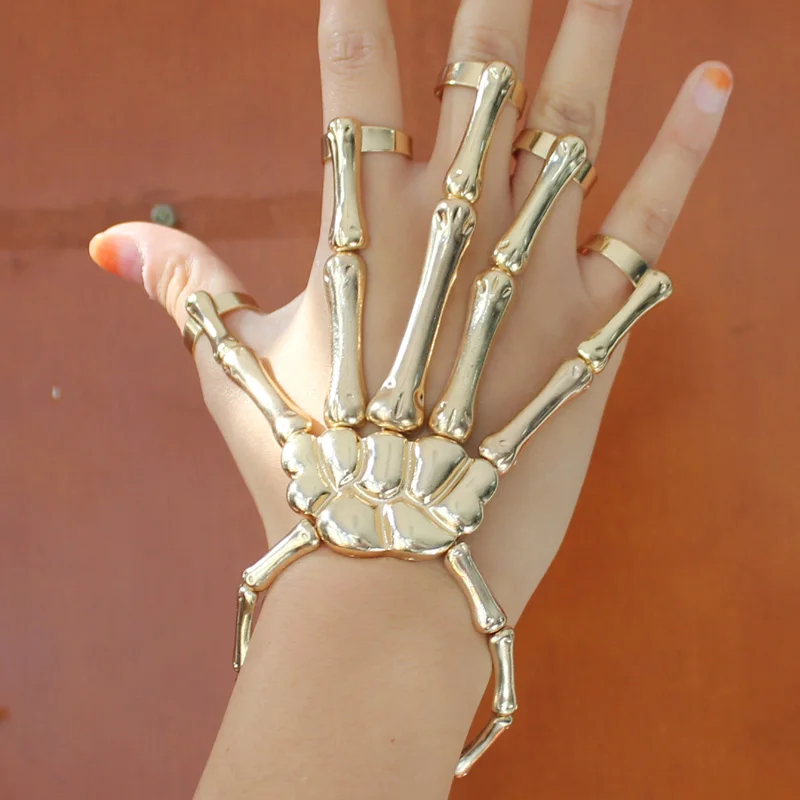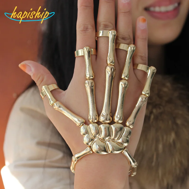 Buy Hapiship Fashion Style Gold Halloween Hand Skull Skeleton Elastic Bracelet Bangle + Rings RCH Cool
