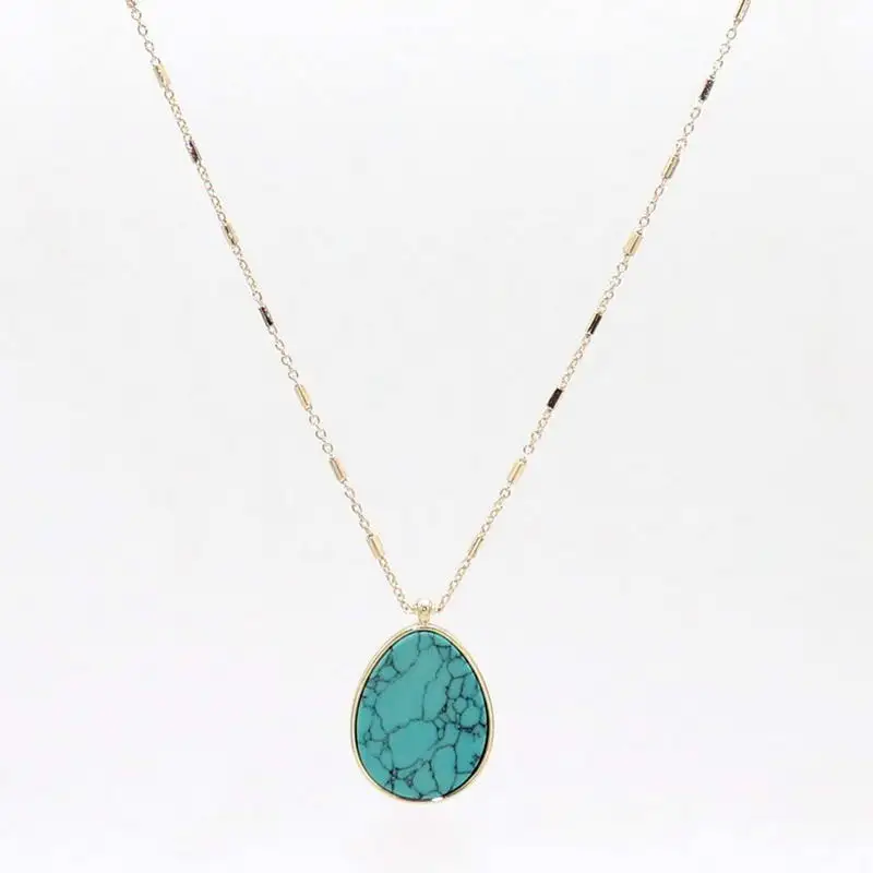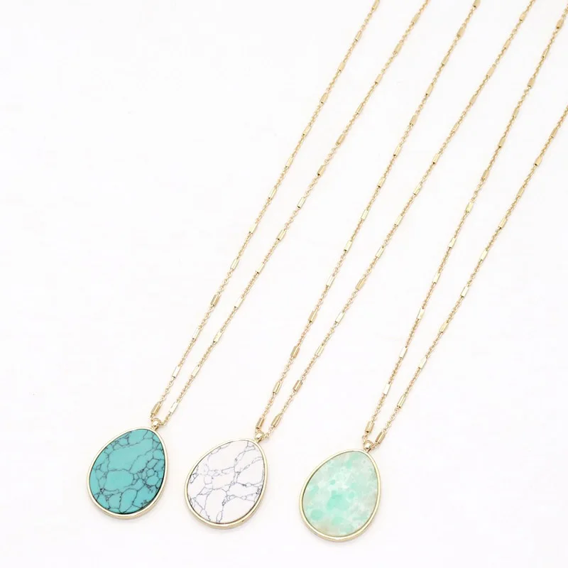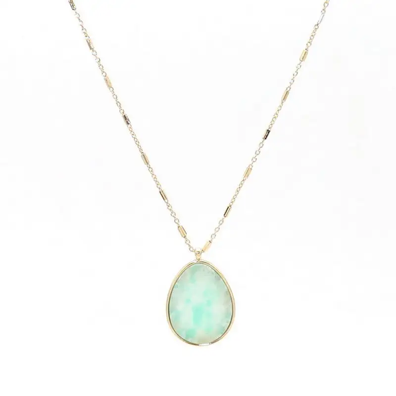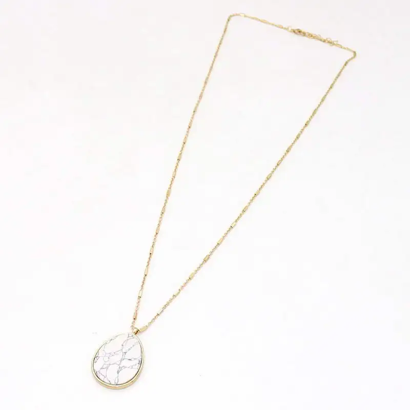 New ZWPON 2019 Hot Selling Gold Frame Oval Stone Pendant Necklace for Women Fashion Natural Stone Long