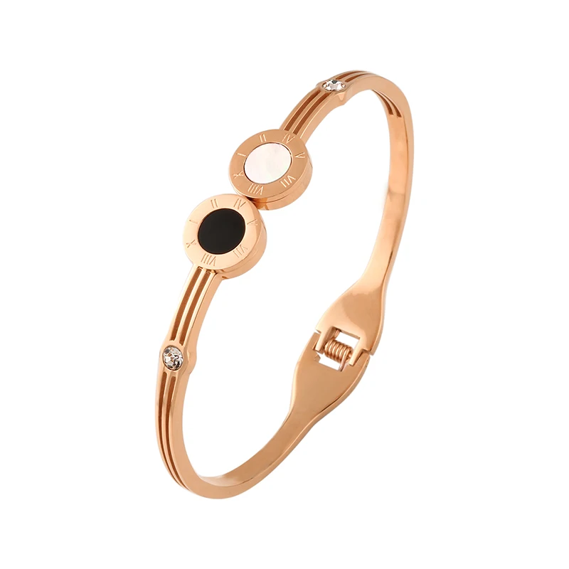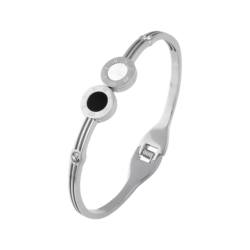 Promo Pulseira Feminina Black & White Open Cuff Bracelets with Rhinestone Paved Popular Stainless Steel B