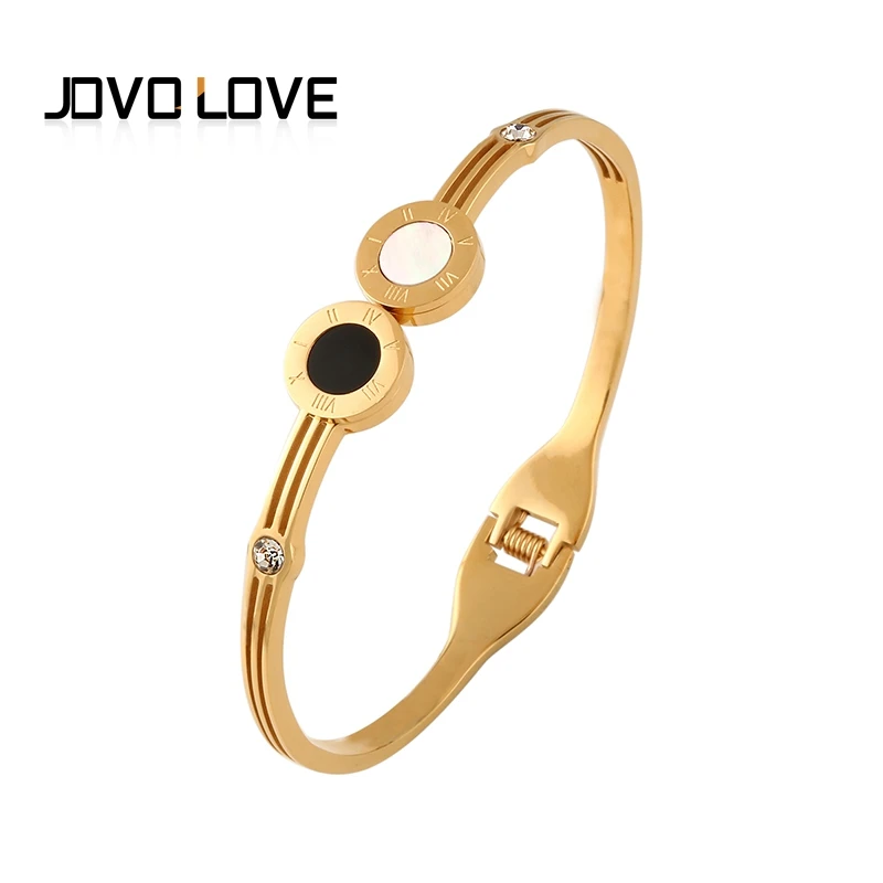 Buy Pulseira Feminina Black & White Open Cuff Bracelets with Rhinestone Paved Popular Stainless Steel B